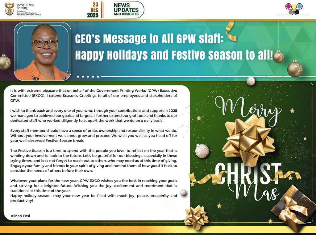 CEO’s Message to All GPW Staff: Happy Holidays and Festive Season to All